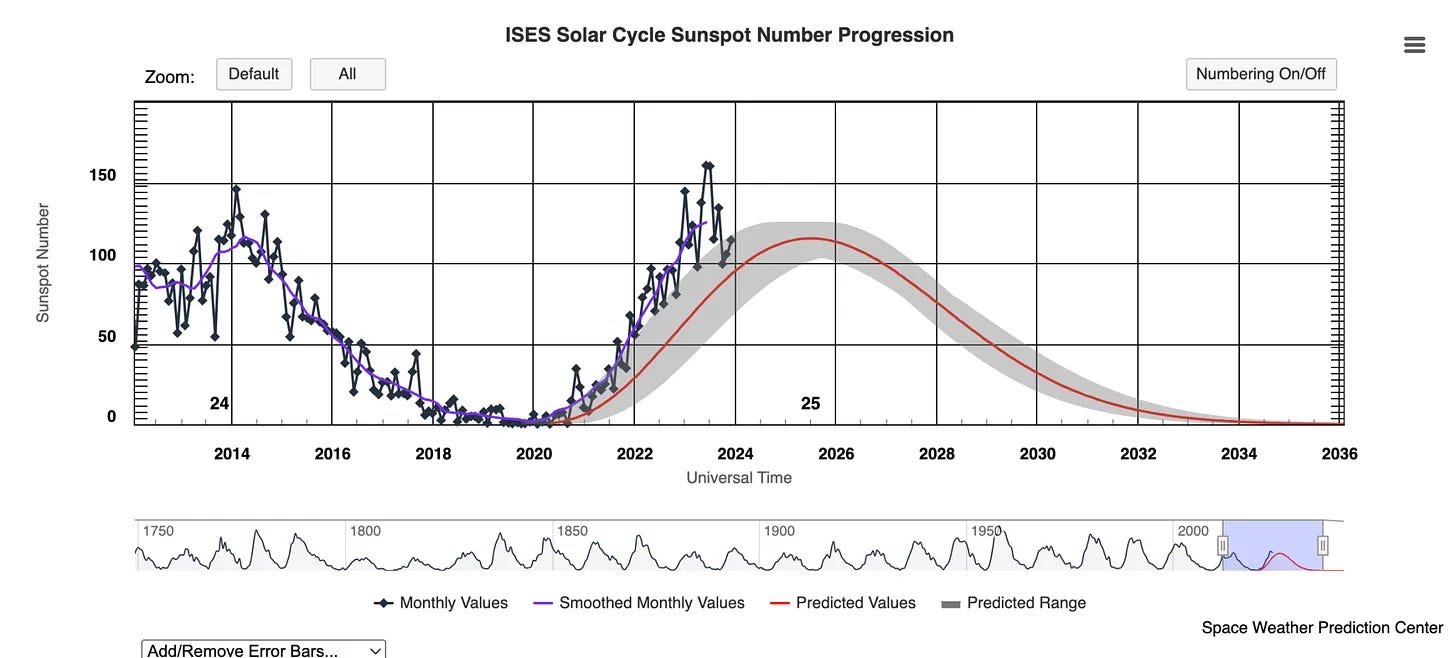 We find ourselves in the new solar cycle 25, which commenced in 2020. Each cycle spans approximately 11 years, but the variations are significant. The sun has been unusually active lately, frequently unleashing powerful solar storms. A researcher with questionable motives might exploit this situation, as it provides a convenient cover for experiments, with the sun conveniently taking the blame.