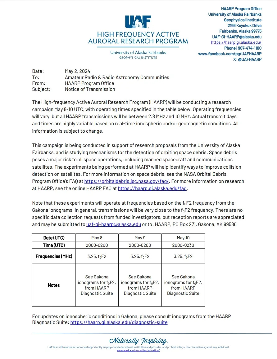 Again, we must emphasize that there are plenty of facilities around the world to tamper with the ionosphere, including interactions: